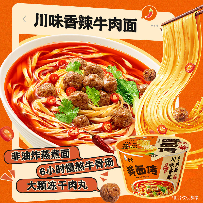 白象鲜面传非油炸蒸煮面速食食品面汤面拌面泡面桶装整箱牛肉面