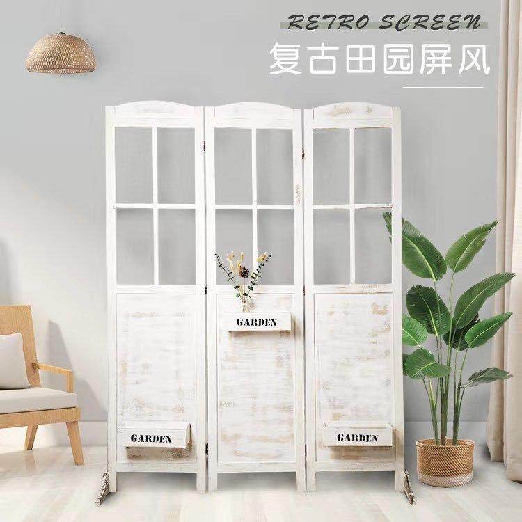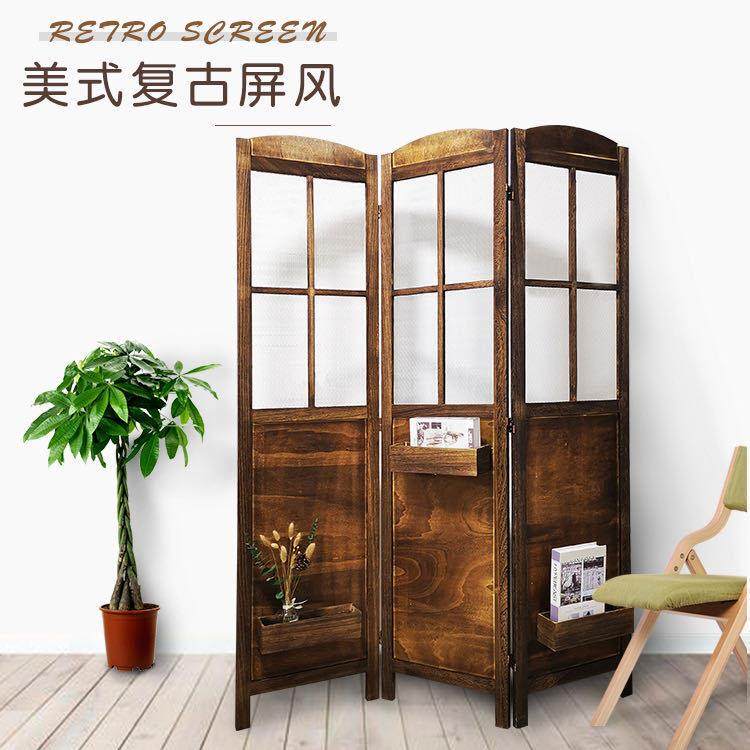 复古做旧实木屏风隔断美式乡村移动折屏服装店婚庆装饰包邮折叠