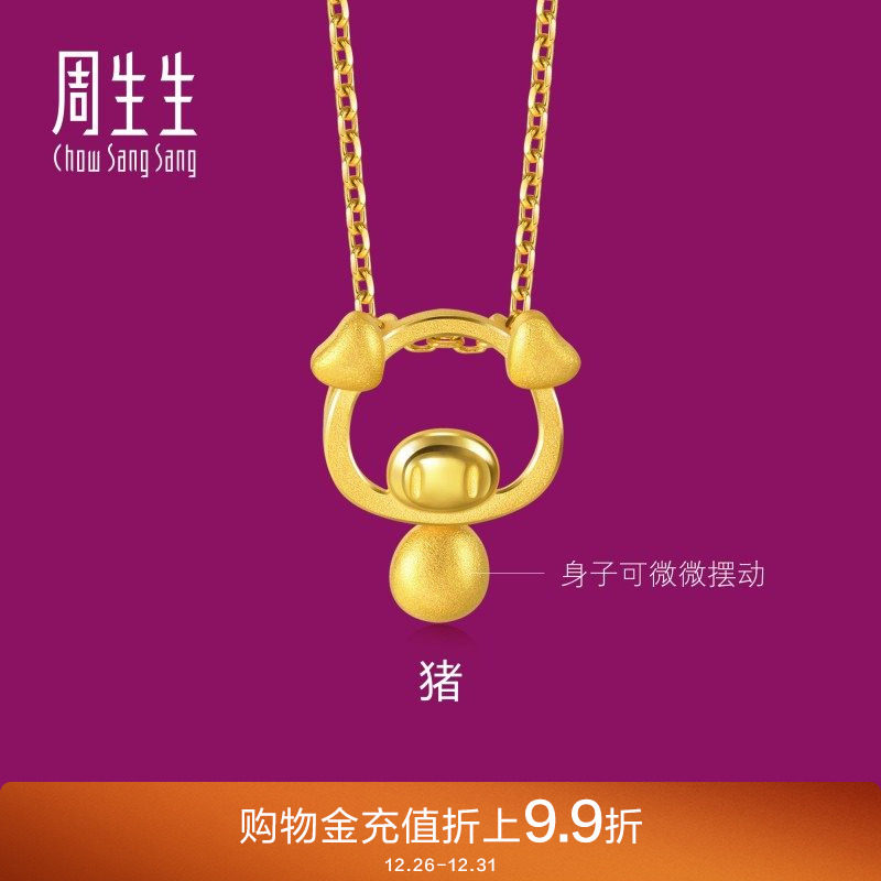 周生生十二生肖猪黄金吊坠足金镂空小猪挂坠金饰91915P