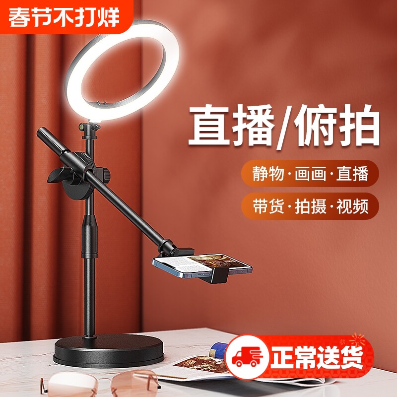 专业桌面俯拍手机支架2026新款直播三脚架录视频vlog拍美食神器专用书法网课开箱拍摄补光灯拍照设备架子灯光