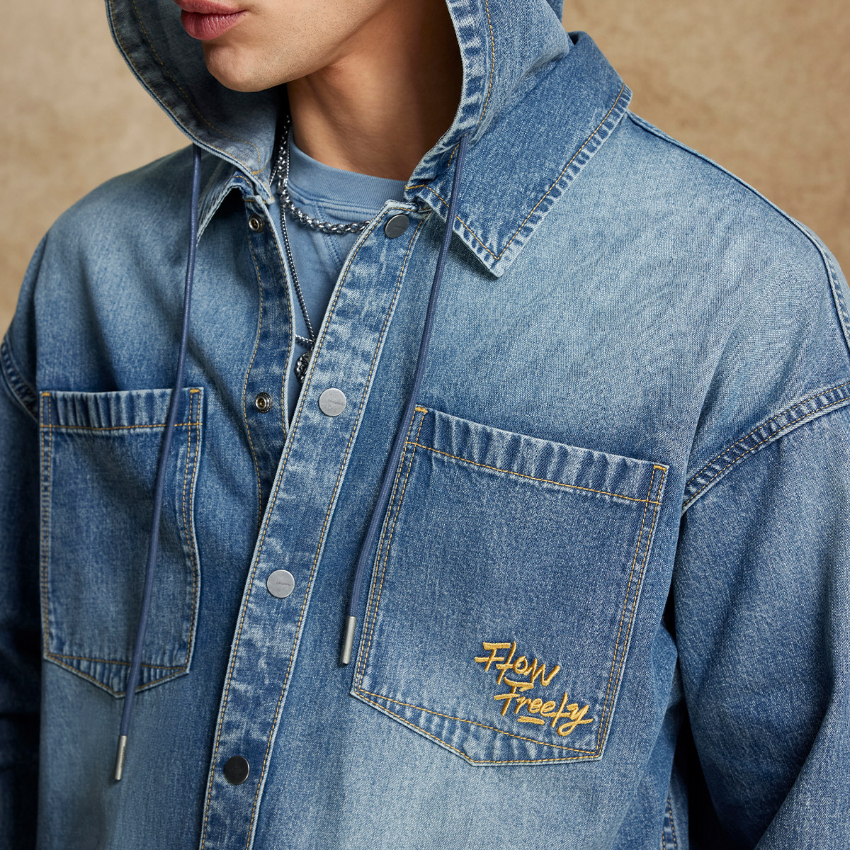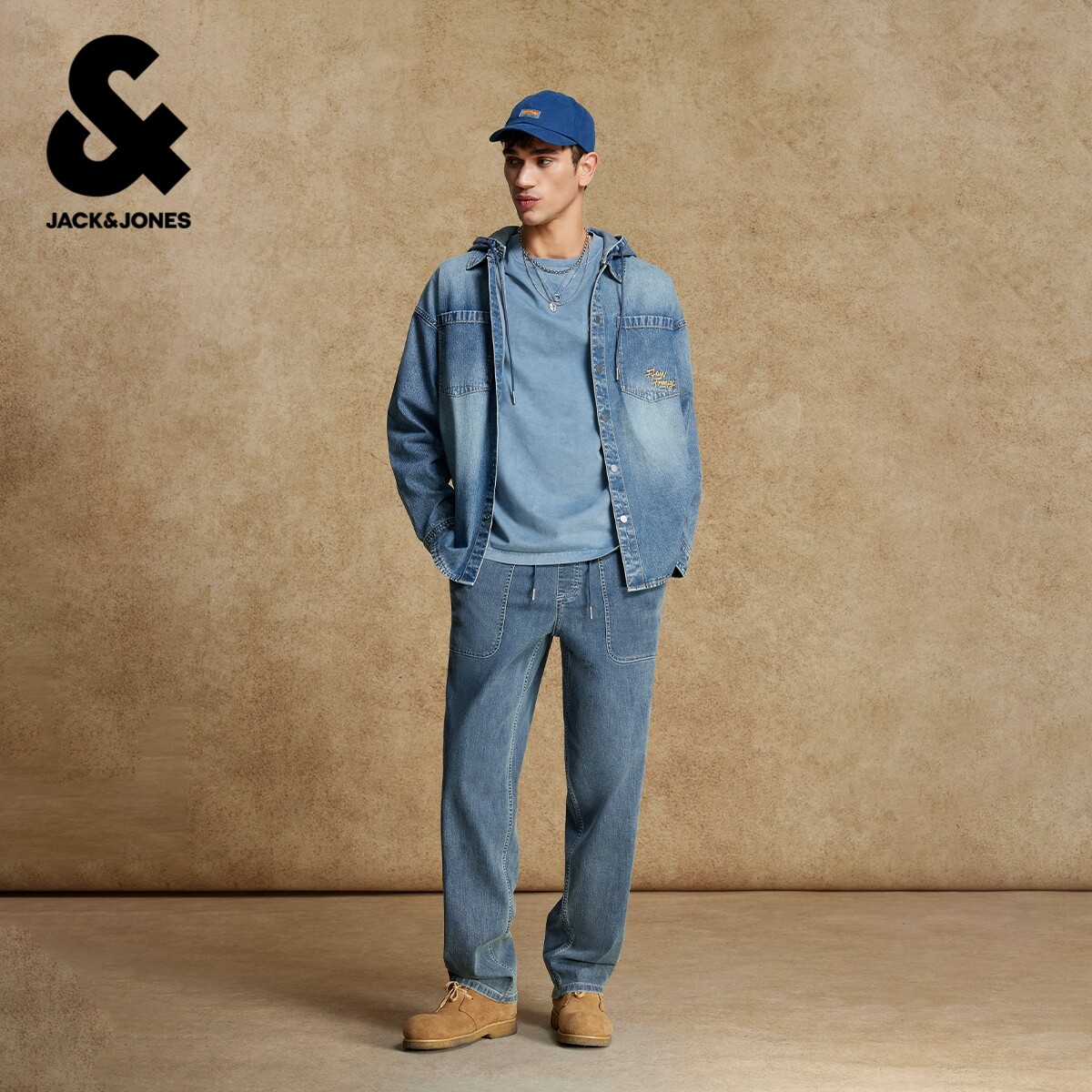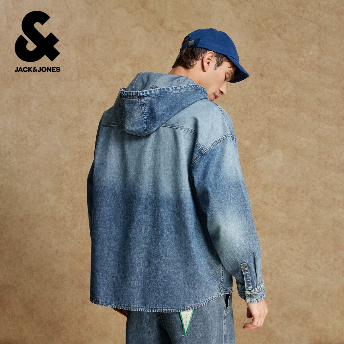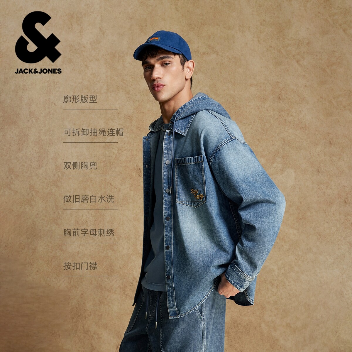 杰克琼斯春季牛仔外套衬衫上衣廓形做旧磨白水洗时尚百搭休闲舒适