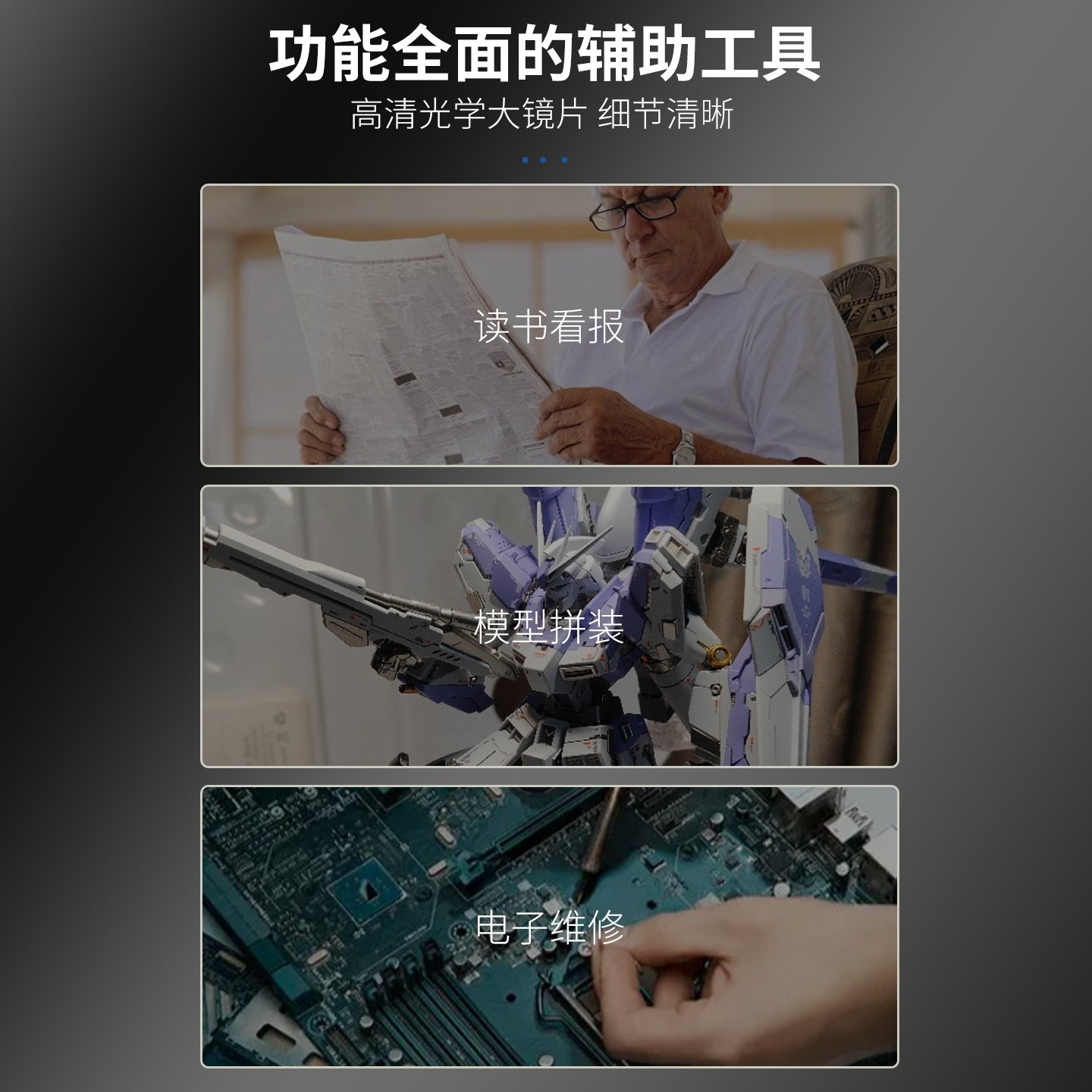 拜斯特挂脖式放大镜带灯三挡变光充电款涂模型老人阅读看手机