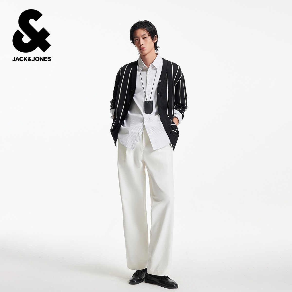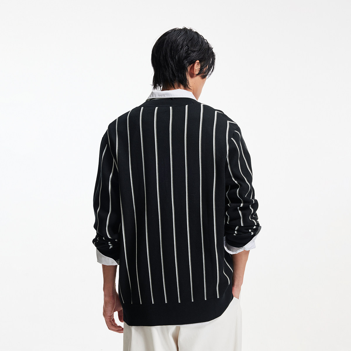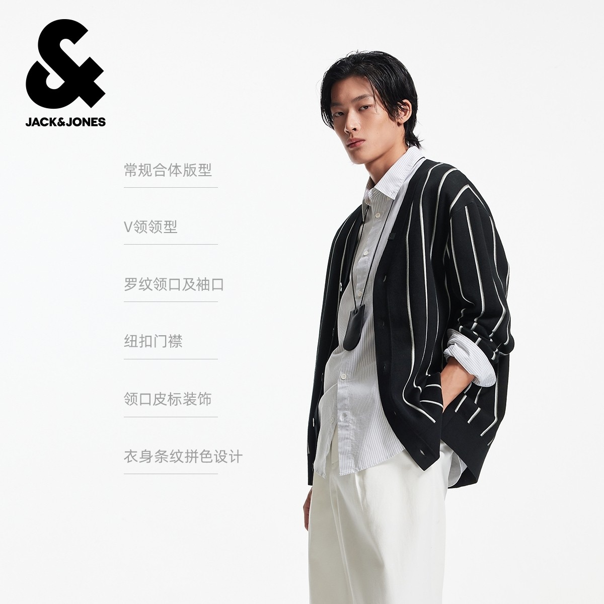 杰克琼斯男生秋季V领毛衣2025年新款经典百搭日常条纹针织衫