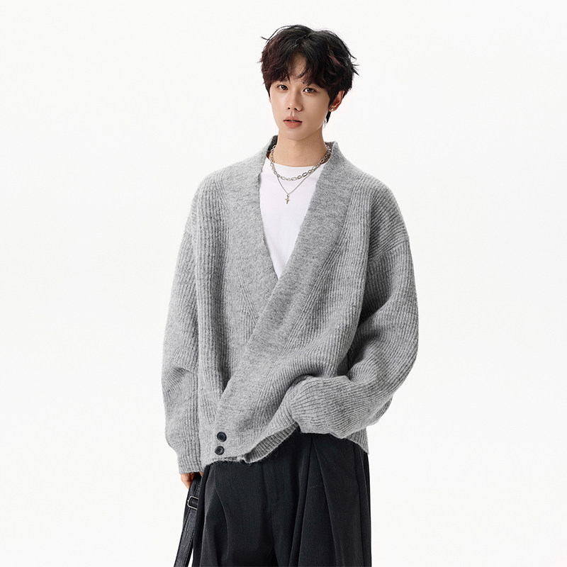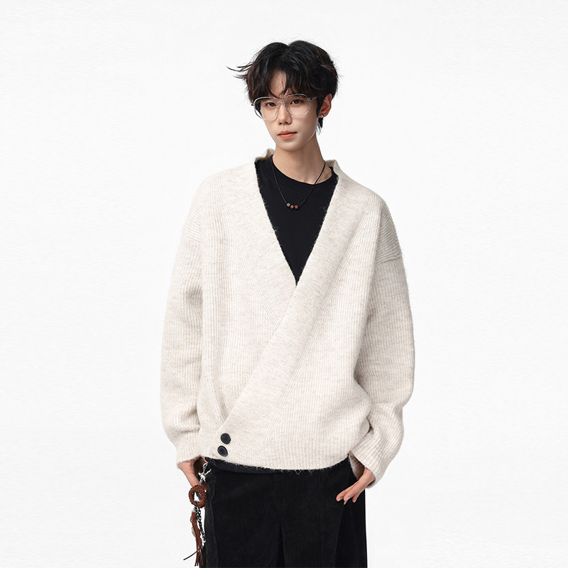 回力日系复古V领毛衣男士秋冬季2025新款宽松慵懒风男生针织毛衫
