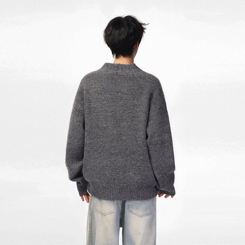 NOFUNNULL 美式亨利领纽扣套头毛衣男秋冬宽松休闲圆领针织衫上衣