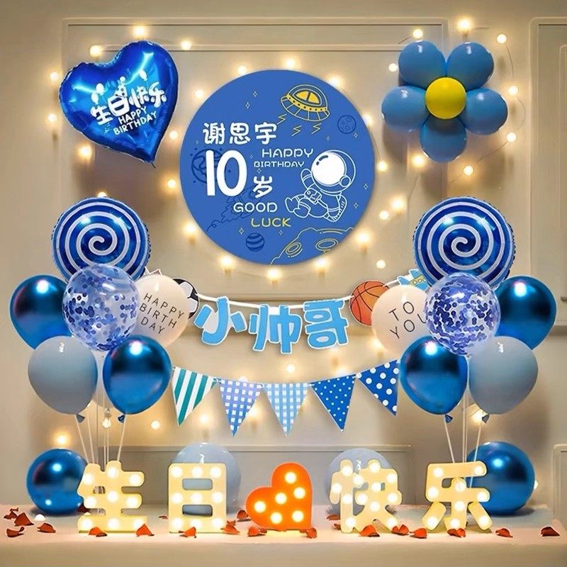 男孩儿童生日气球装饰品10电视投屏派对十周岁快乐场景布置背景墙