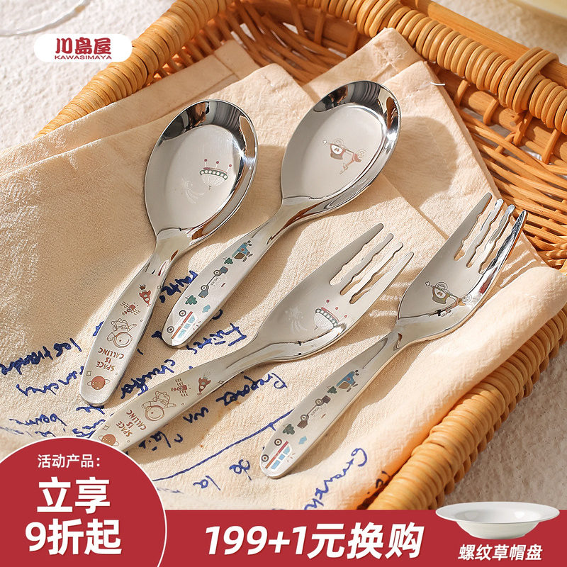 川岛屋316不锈钢勺子儿童吃饭勺家用可爱短柄宝宝汤勺叉子元宝勺