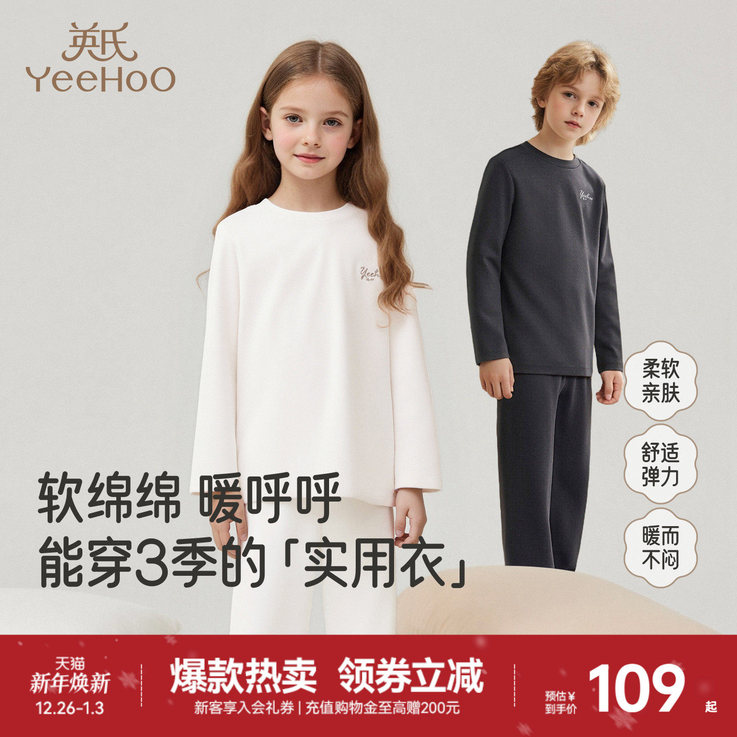 英氏儿童内衣套装睡衣睡裤秋冬保暖男童女童居家服秋衣秋裤新款冬