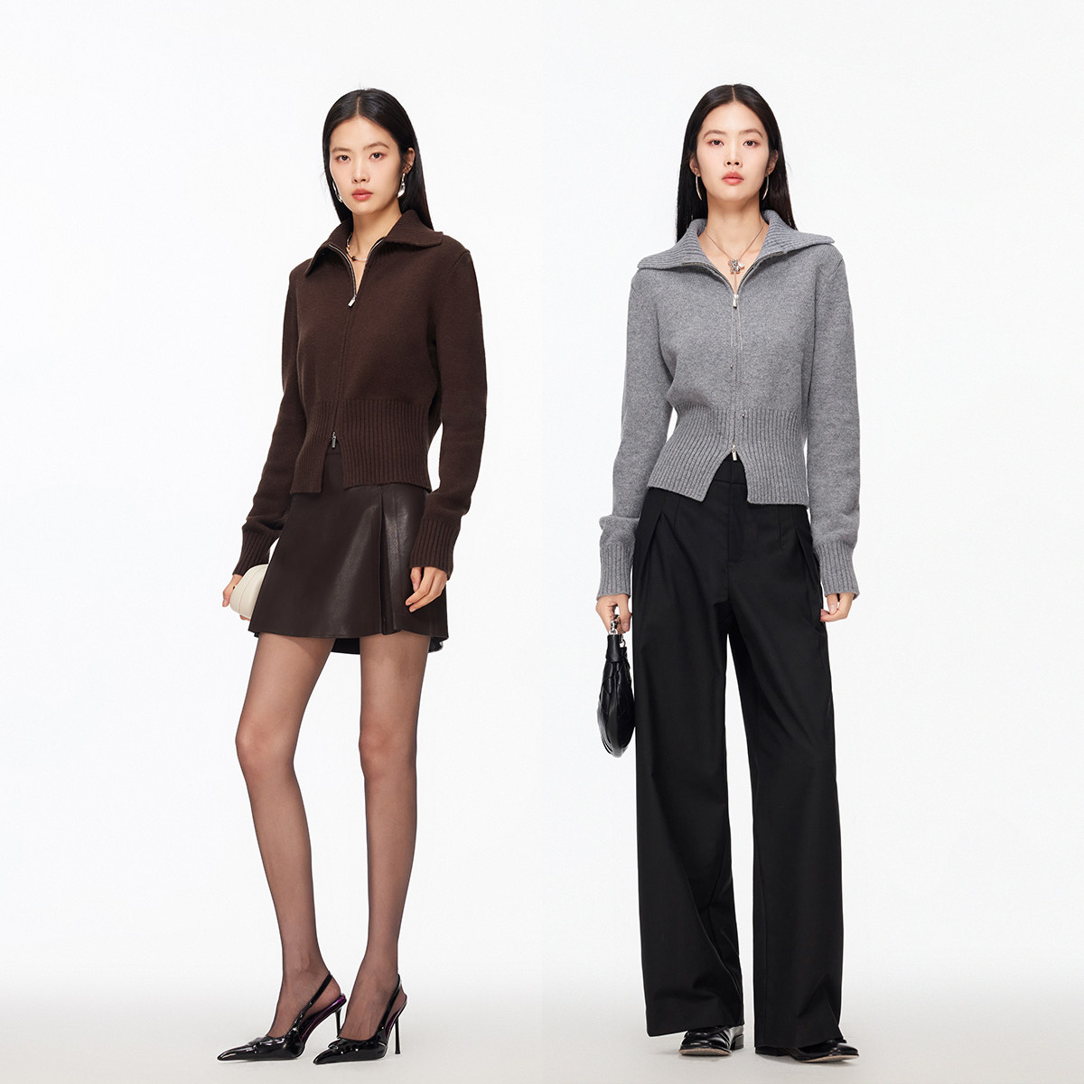 Vero Moda毛衣女2026春季新款含绵羊毛双拉链纯色上衣326113022