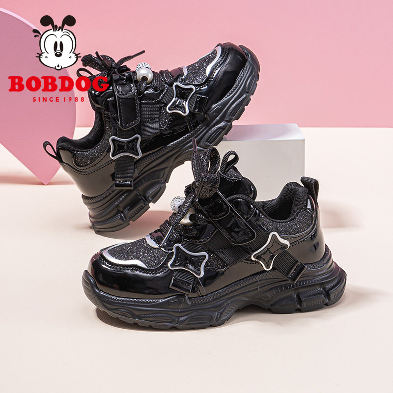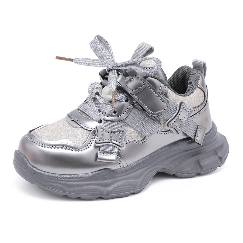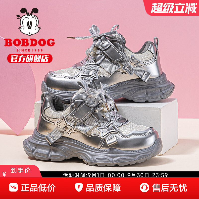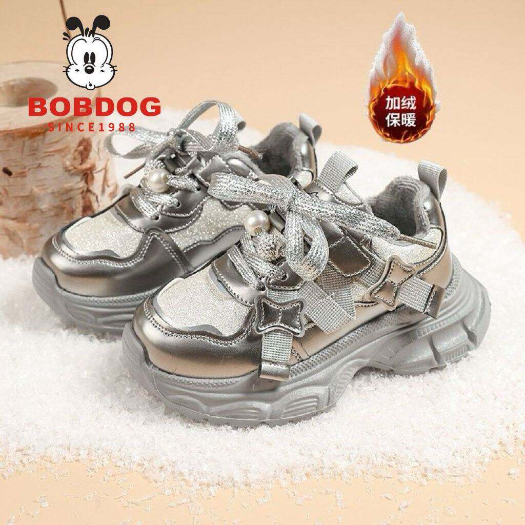 巴布豆童鞋女童鞋子2025秋冬加绒新款鞋学生儿童运动鞋银色黑色
