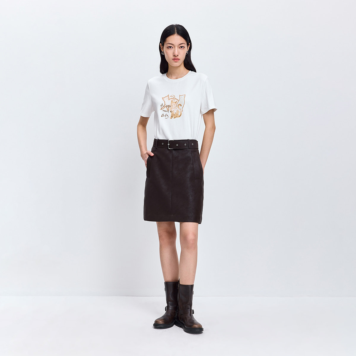 陈都灵丨凉感T森马短袖T恤女修身纯色基础夏季新款圆领白色女装