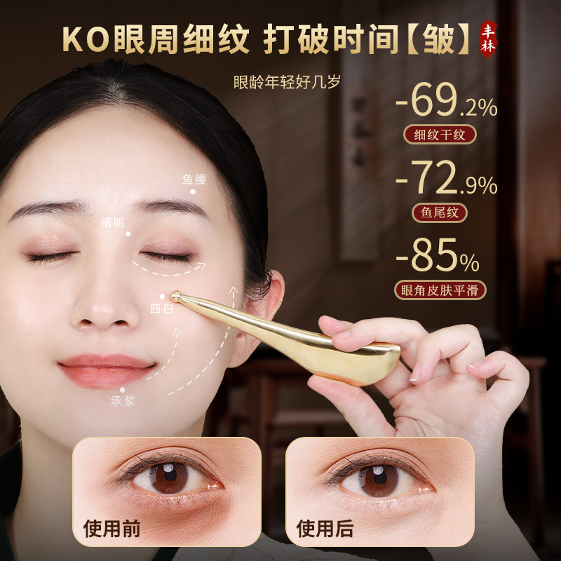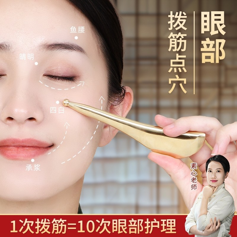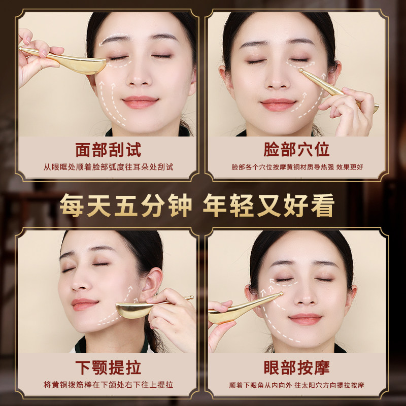 丰林全黄铜面部拨筋棒脸部刮眼睛眼部专用牛角拔刮痧板按摩提拉
