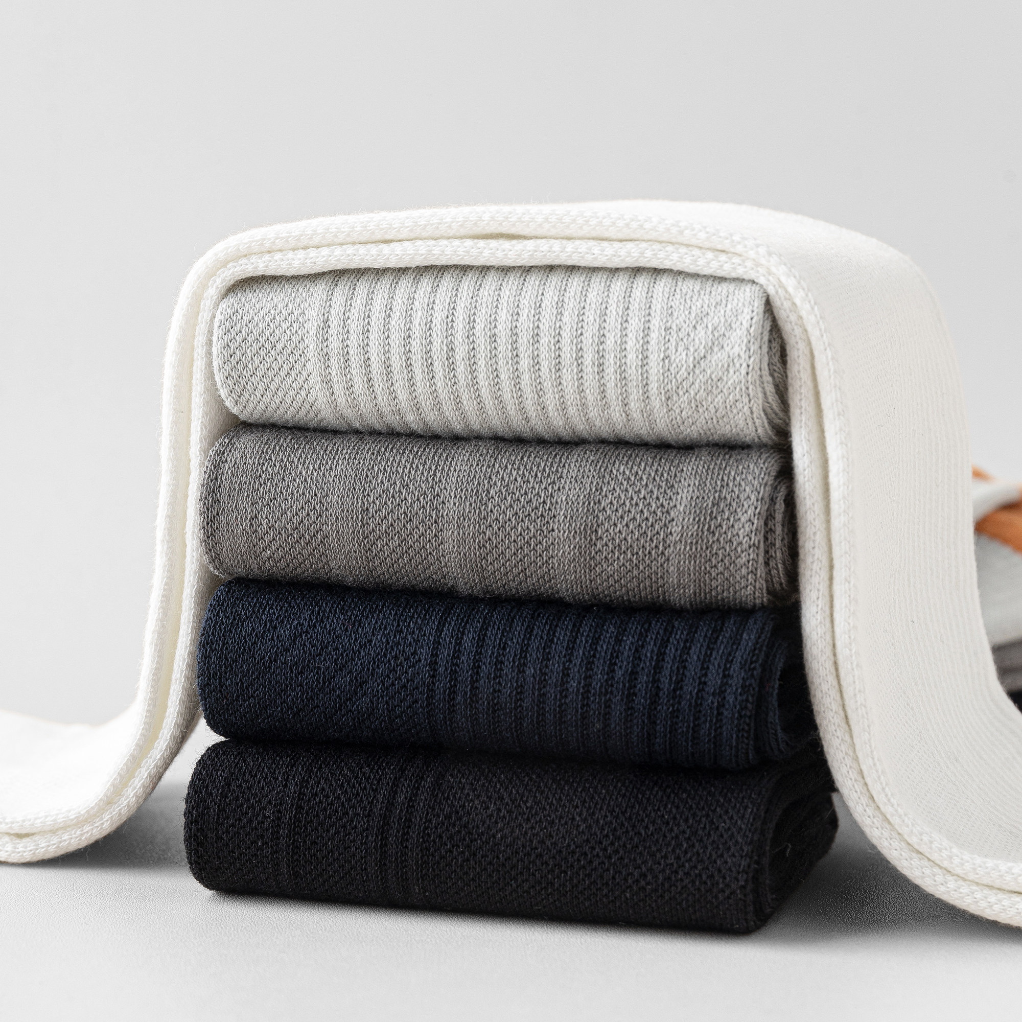 华山泉男袜子秋冬保暖子吸湿排汗长筒螺纹耐磨棉质刺绣商务黑A06C