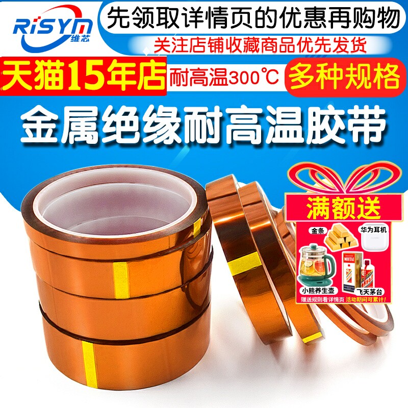 荣晋森金手指耐高温胶带PI聚酰亚胺胶带线路板防焊耐热电池包扎热转印烤箱隔热手机维修固定屏茶色绝缘胶带