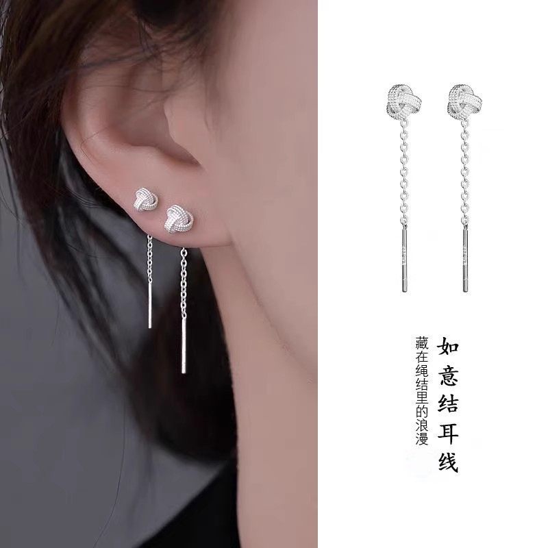 吉祥如意结耳线女养耳洞耳环短款小众设计感流苏耳链简约耳饰耳环