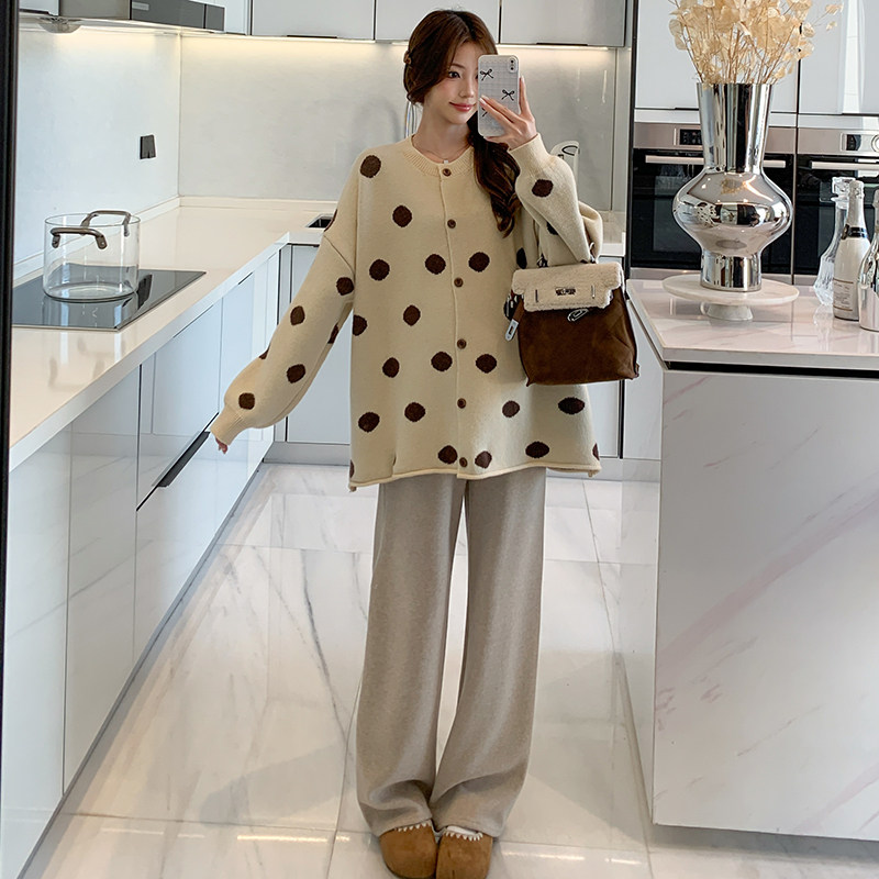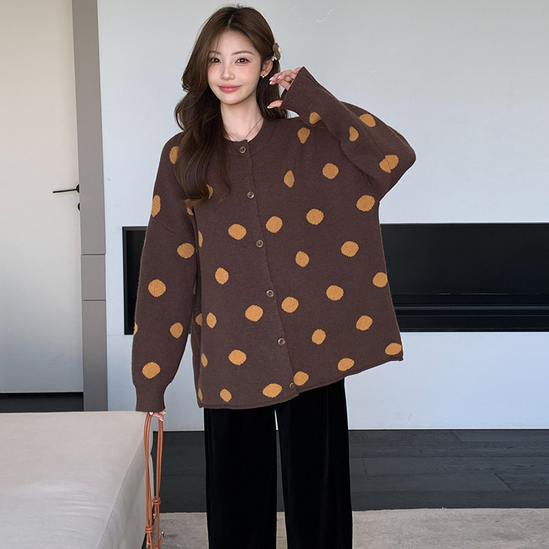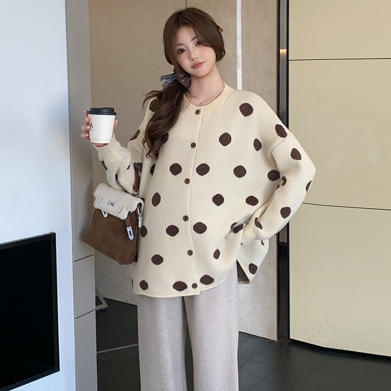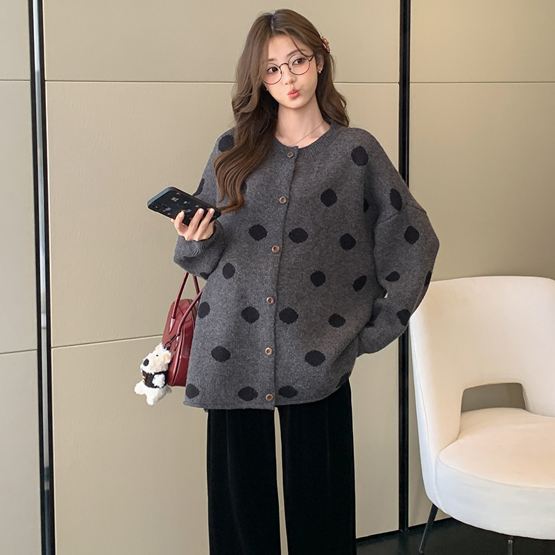 婧麒孕妇装新款圆点图案上衣时尚冬装孕期宽松孕妇毛衣女外穿秋冬