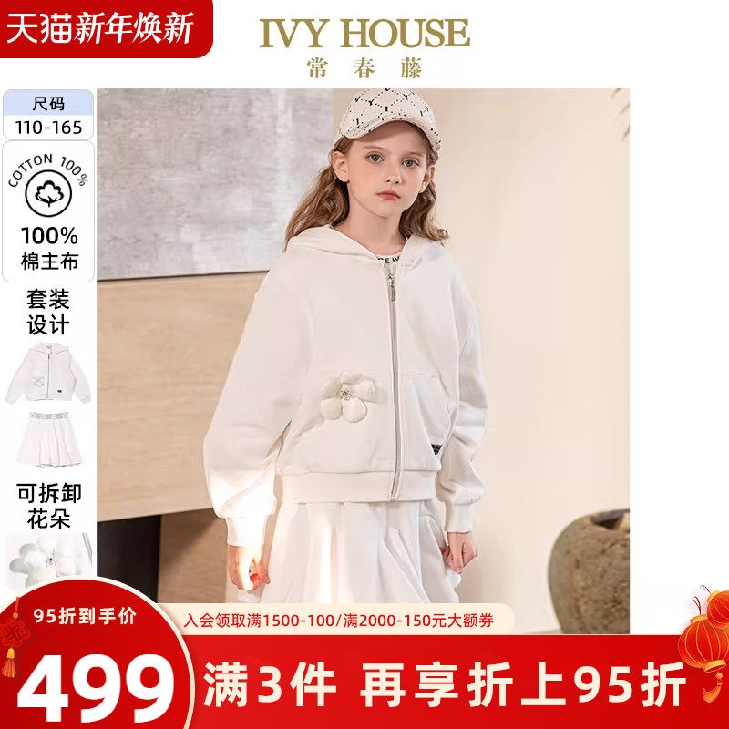IVY HOUSE常春藤童装女童春新款 学院针织花朵元素外套套装亲子装