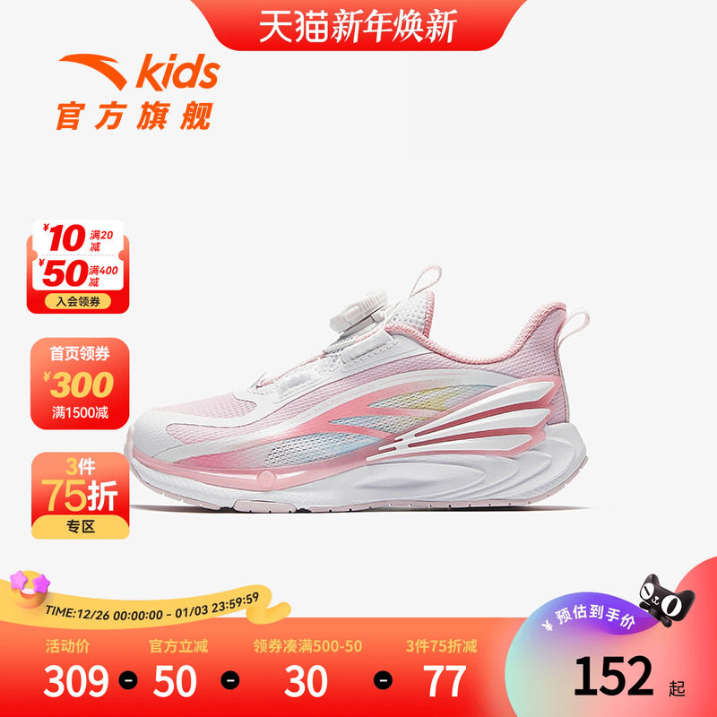 安踏儿童女小童平衡车鞋2025夏新款透气防滑耐磨儿童轻盈旋钮跑鞋