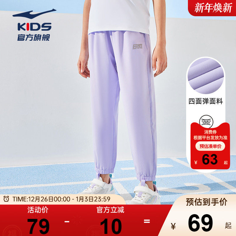 鸿星尔克童装女童裤子夏季新款冰感运动裤速干薄款儿童运动长裤