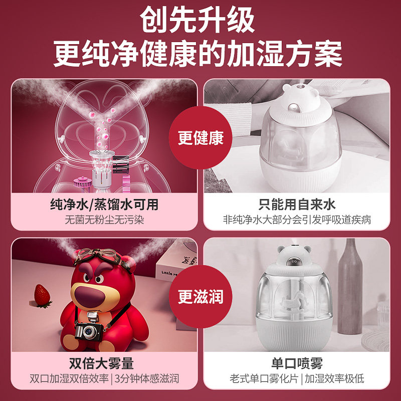 草莓熊加湿器小型空气香薰一体可爱创意迷你卧室家用静音桌面办公室送女生新款学生宿舍生日礼物女友新年元旦