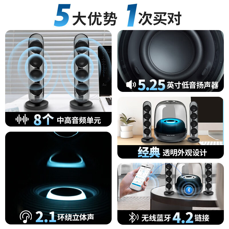 【政府补贴】哈曼卡顿音乐水晶4音响蓝牙桌面音箱电脑低音炮284