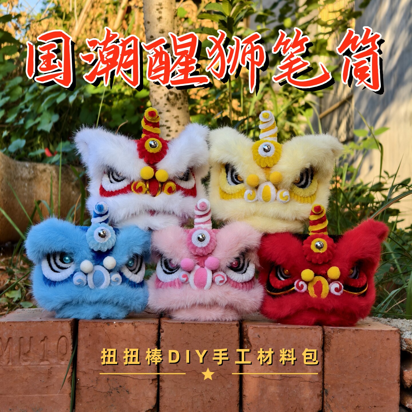 醒狮笔筒扭扭棒手工diy材料包狮子狮头办公桌面装饰摆件新年礼物