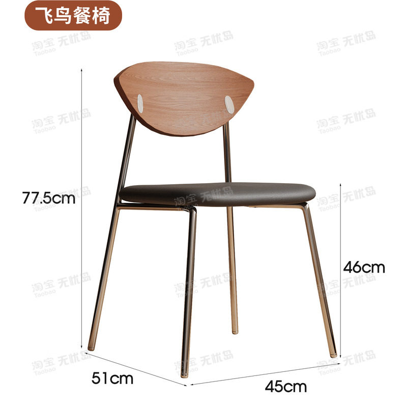 轻奢侘寂风餐椅皮软包设计师现代弯曲木咖啡厅实木椅子家用书房椅