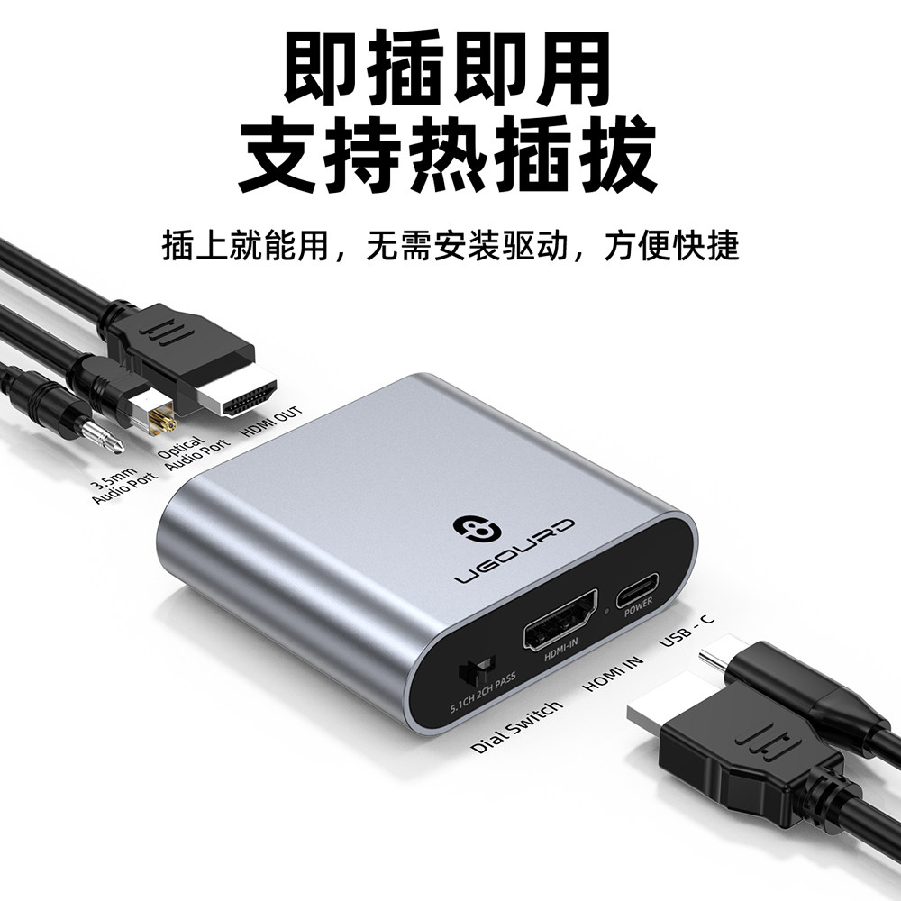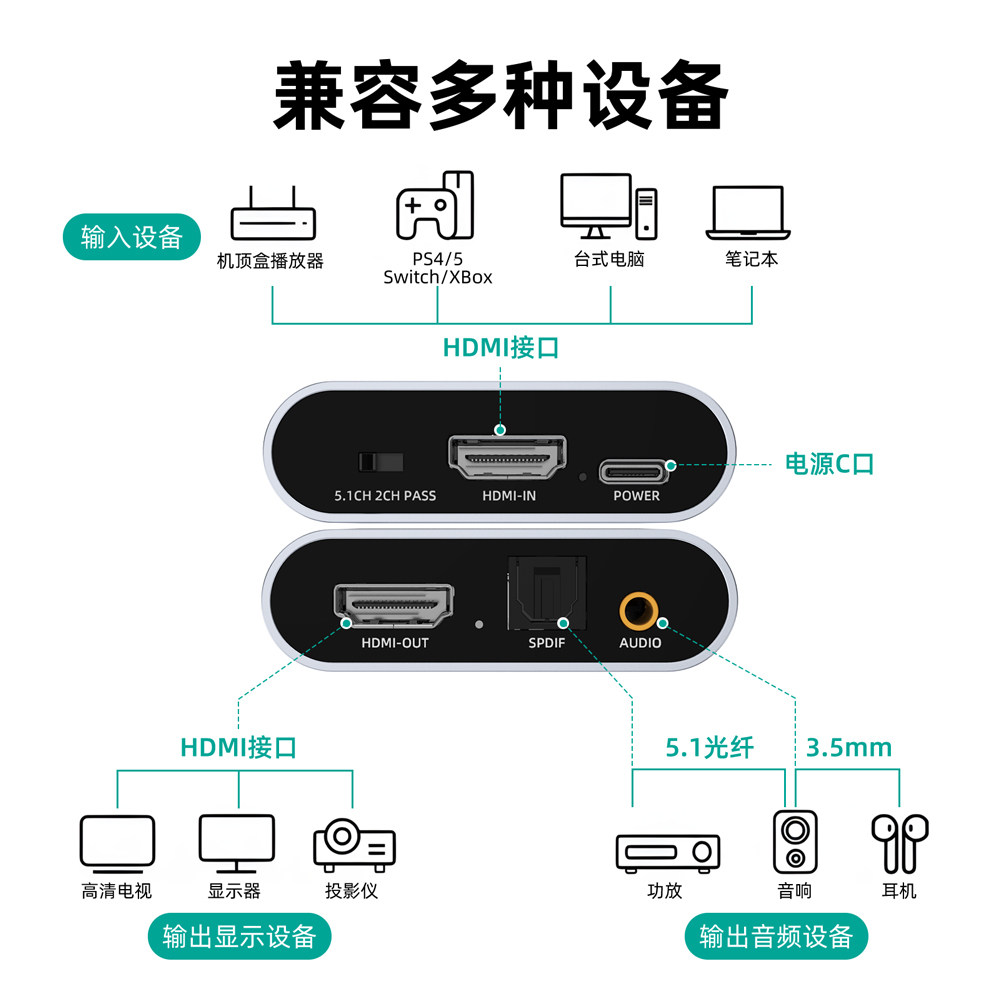 hdmi音频分离器高清转3.5AUX耳机光纤5.1声道PS4/XBOX机顶盒4K