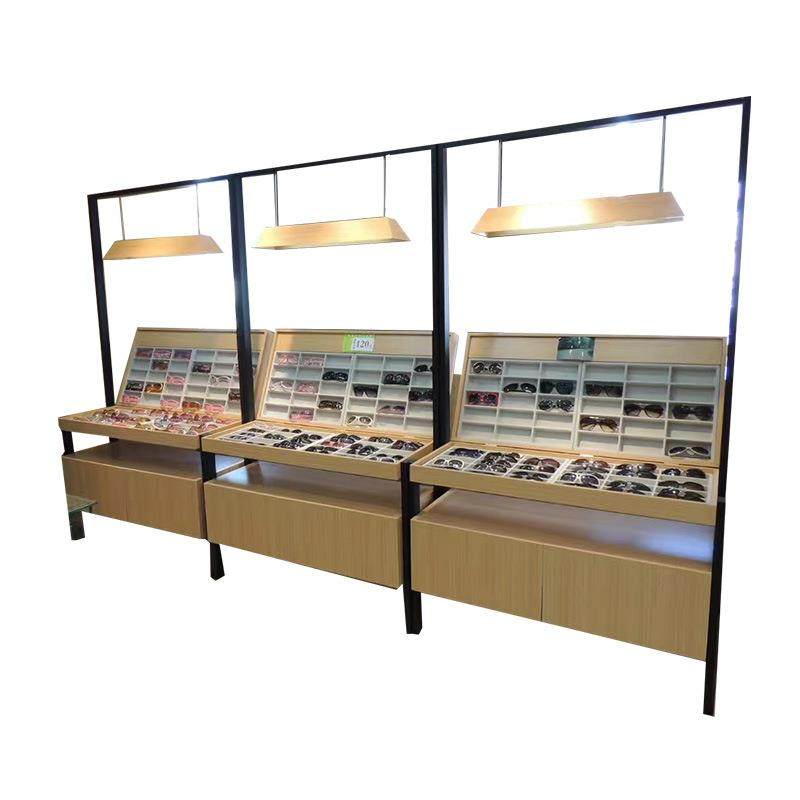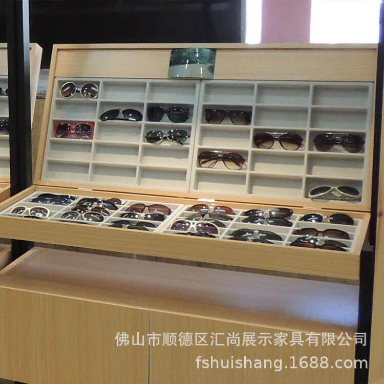 展柜厂家定 制不锈钢眼镜柜格子道具配饰 木纹眼镜中岛柜