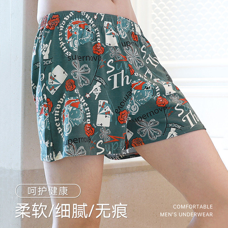 松山棉店蚕柔莫代尔男士内裤透气男生短裤青少年纯棉大码平角裤衩