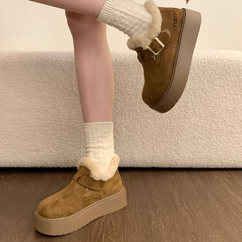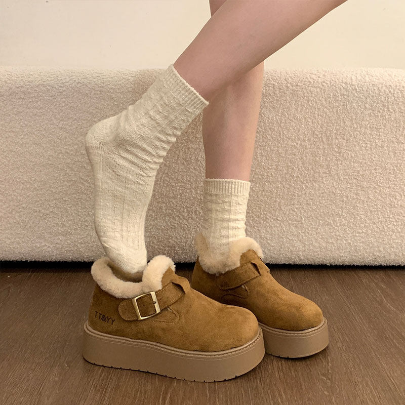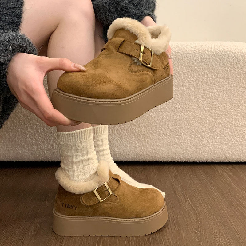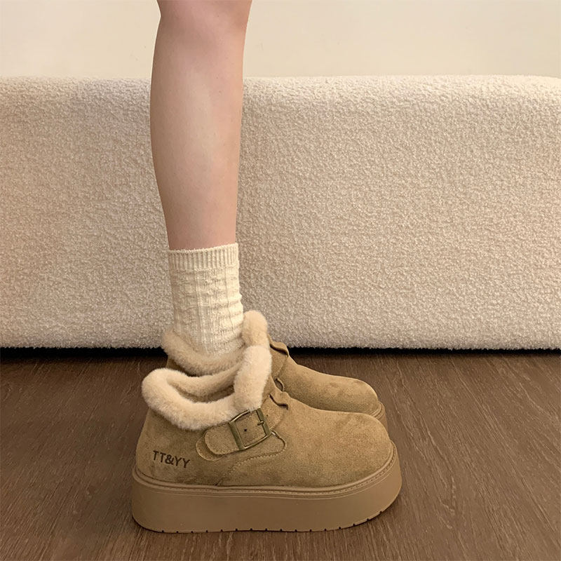厚底加绒勃肯鞋高帮女鞋子2025冬季新款乐福鞋雪地靴毛毛棉鞋毛绒