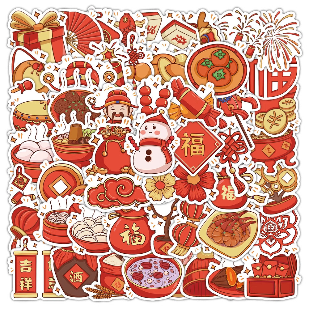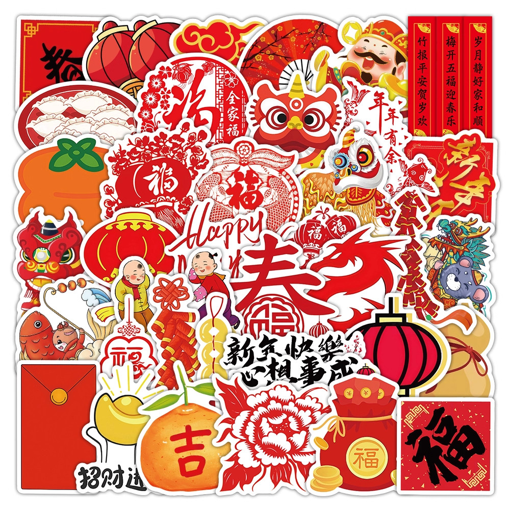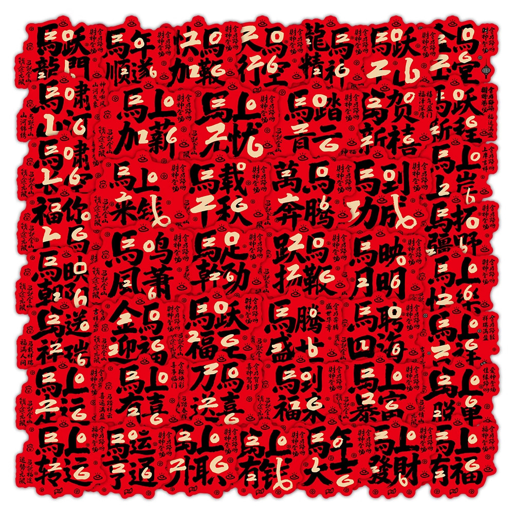 2026年卡通马年祝福语新年快乐吉祥装饰贴纸墙贴玻璃贴红色系灯笼春子字马到成功手机壳财神diy自粘防水贴画
