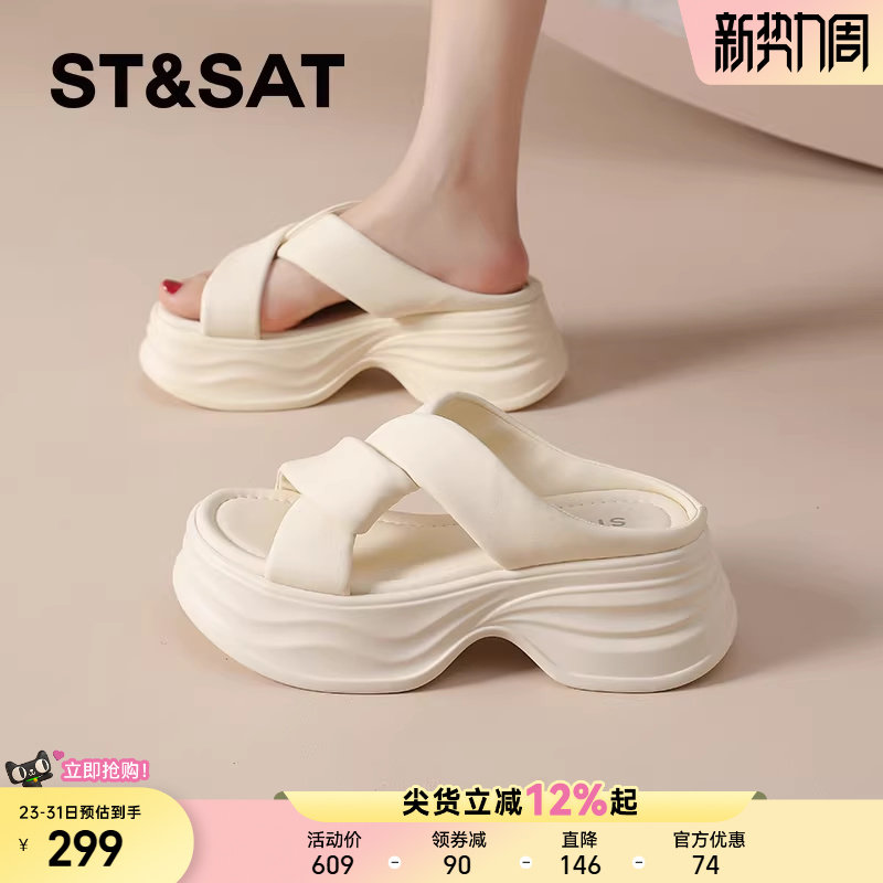 星期六松糕厚底拖鞋女夏外穿新款小个子增高凉鞋配裙子休闲百搭爆