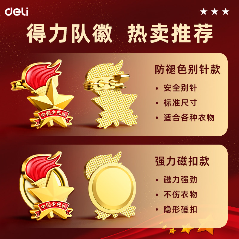 得力正版少先队员队徽小学生标准款2024新款徽章校徽中国别针式磁吸磁铁扣强力少年先锋队红领巾校微团徽队辉