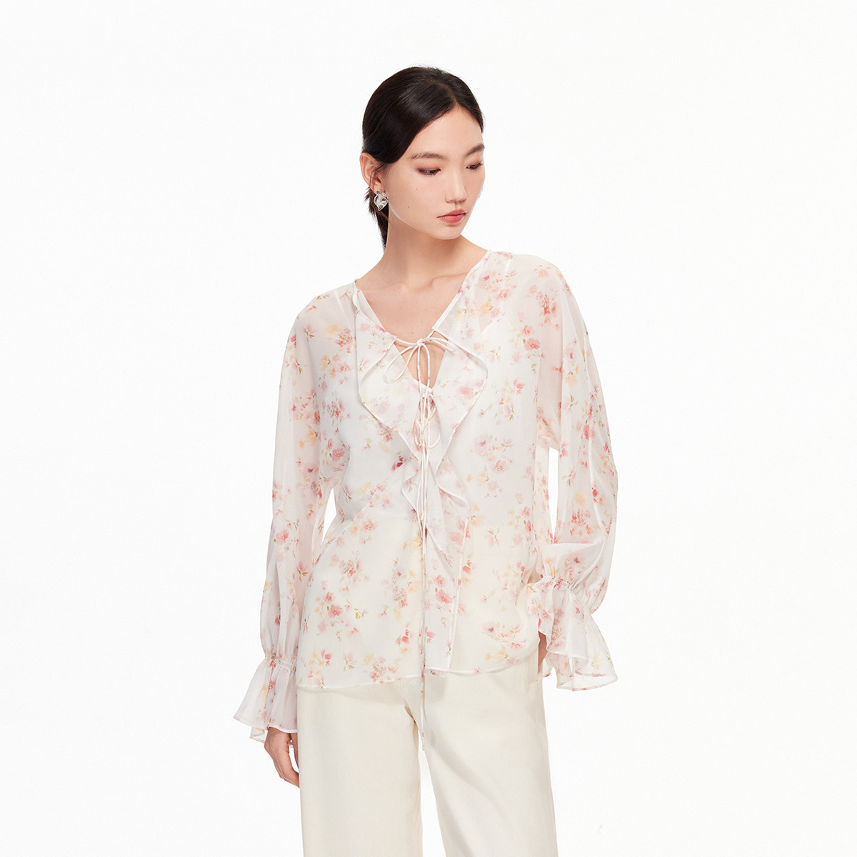 Vero Moda衬衫2026春季新款碎花甜美荷叶边精致绑带上衣气质法式
