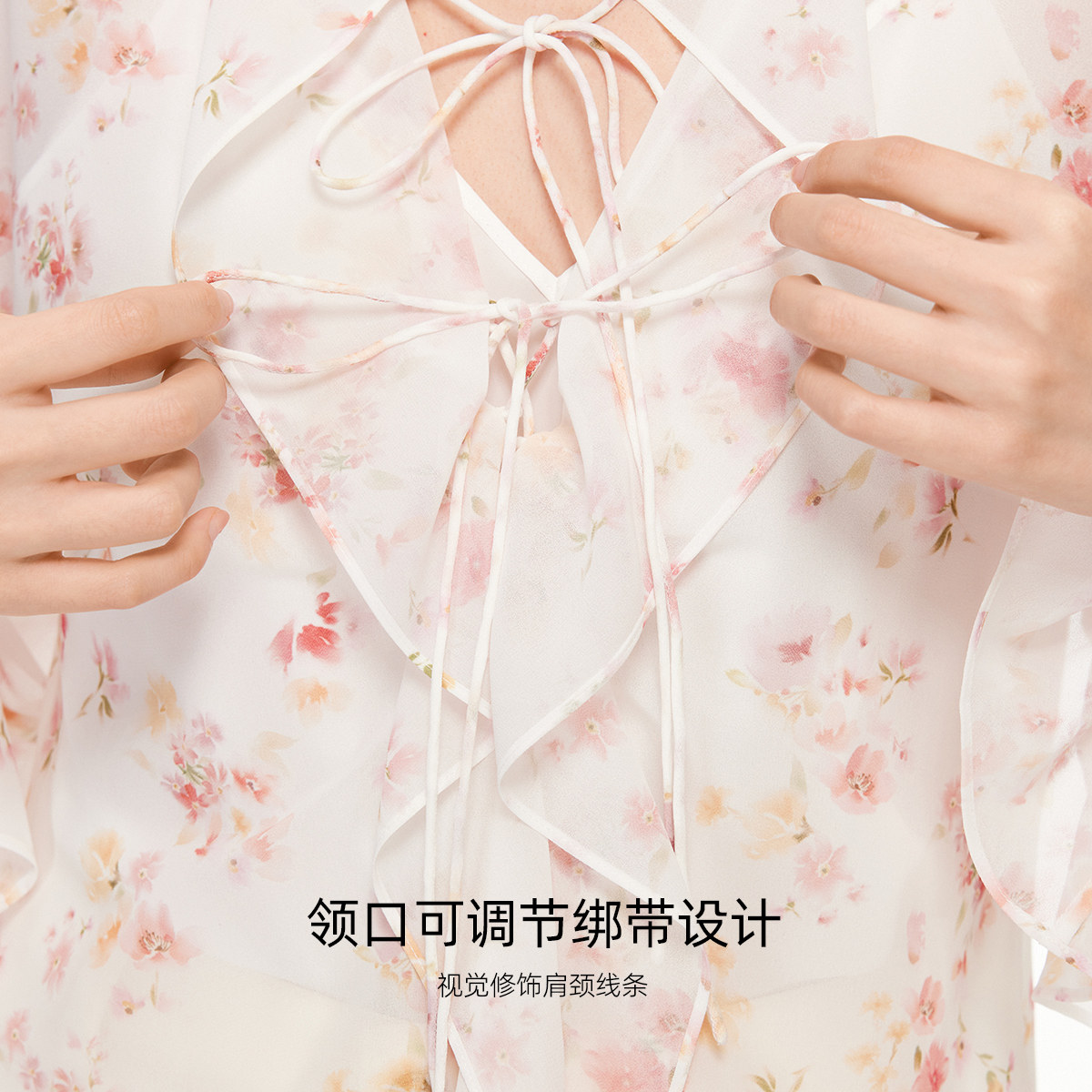 荷叶边装饰,精致碎花图案,甜美减龄