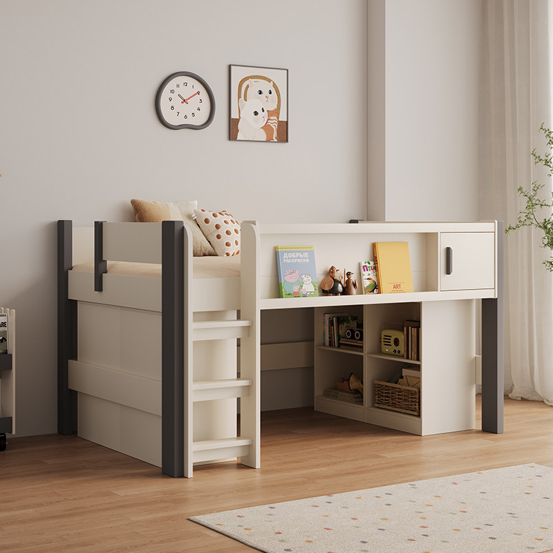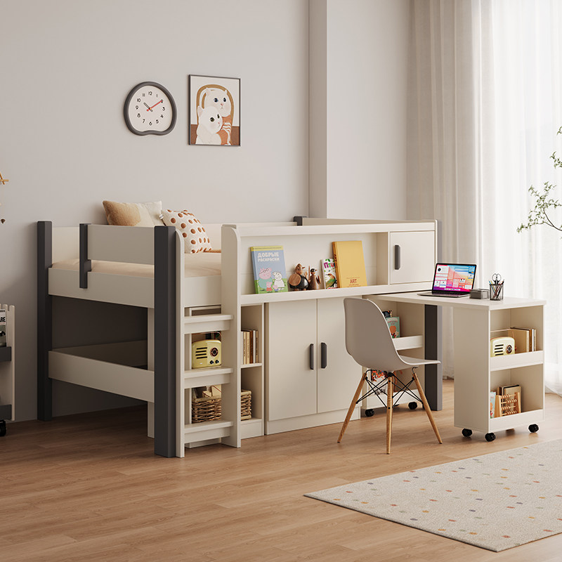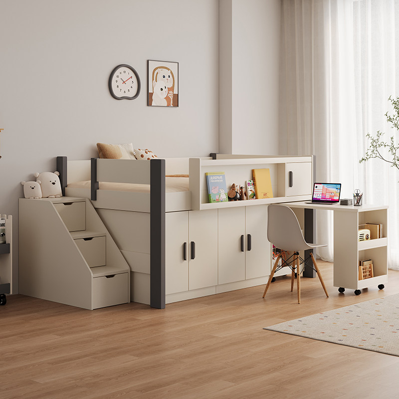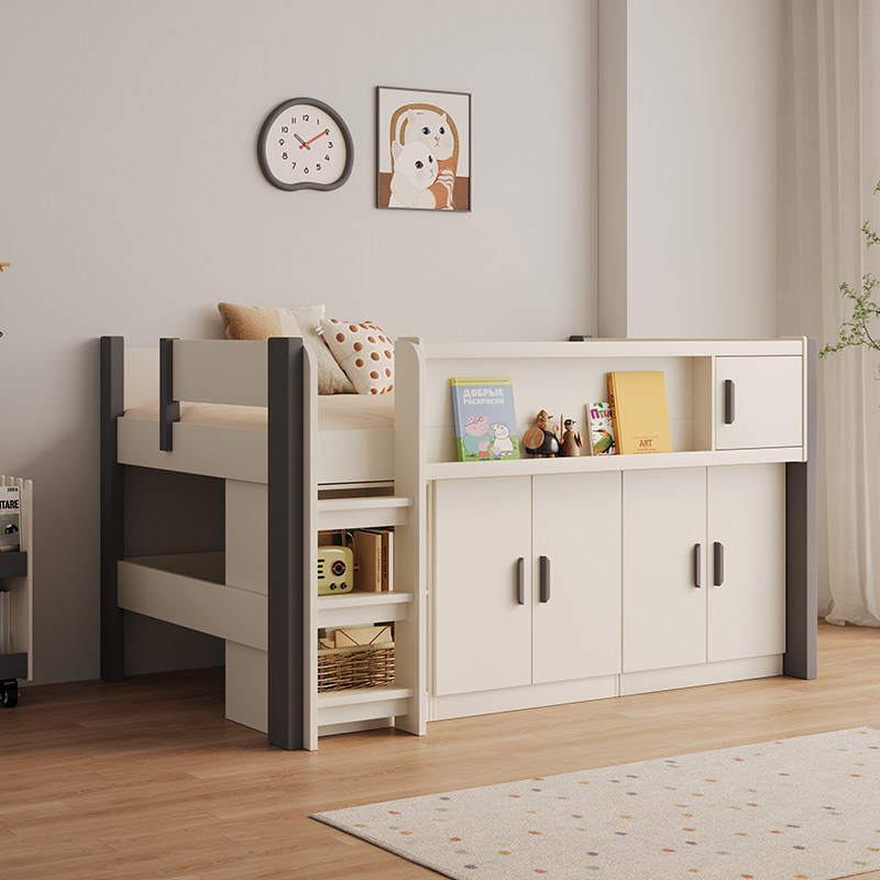 儿童半高带衣柜书桌一体男孩女孩单人小户型卧室上下储物双层床