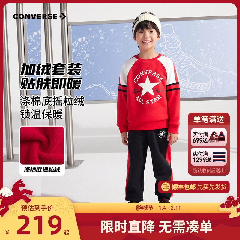 匡威童装儿童卫衣套装加绒2025冬季男童长袖长裤两件套保暖冬装棉