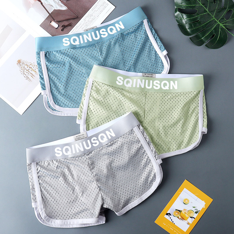 冰丝网孔男士内裤男生平角裤阿罗裤透气男款短裤头夏季薄镂空轻薄