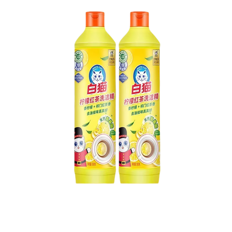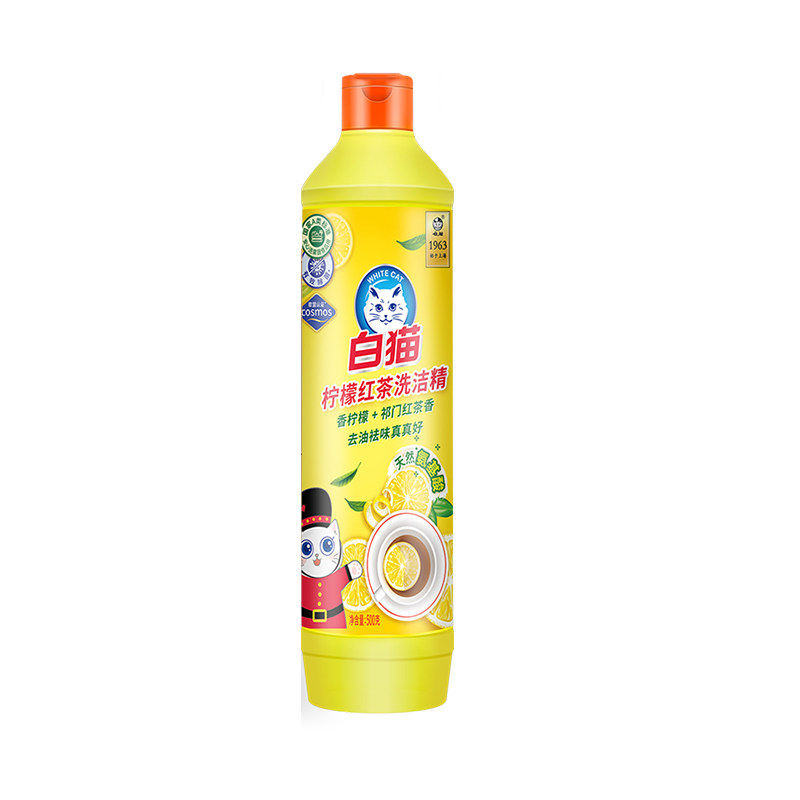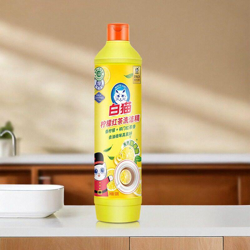 白猫柠檬红茶洗洁精500g去油去污洁净餐具食品洗洁精家用级小瓶