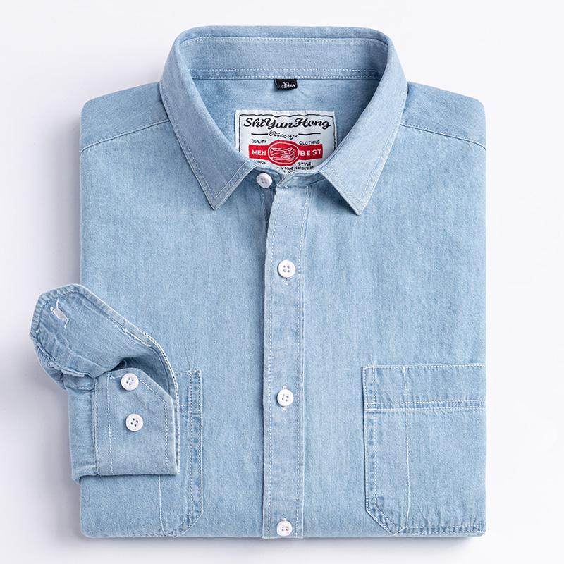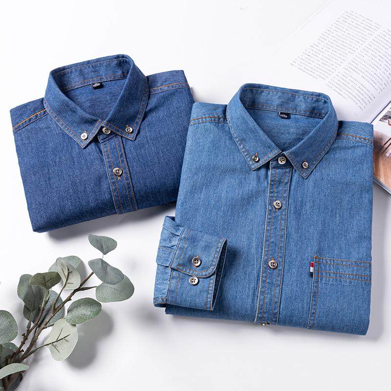 春秋季牛仔衬衫男韩版修身男士长袖纯棉内搭衬衣潮流休闲工装外套