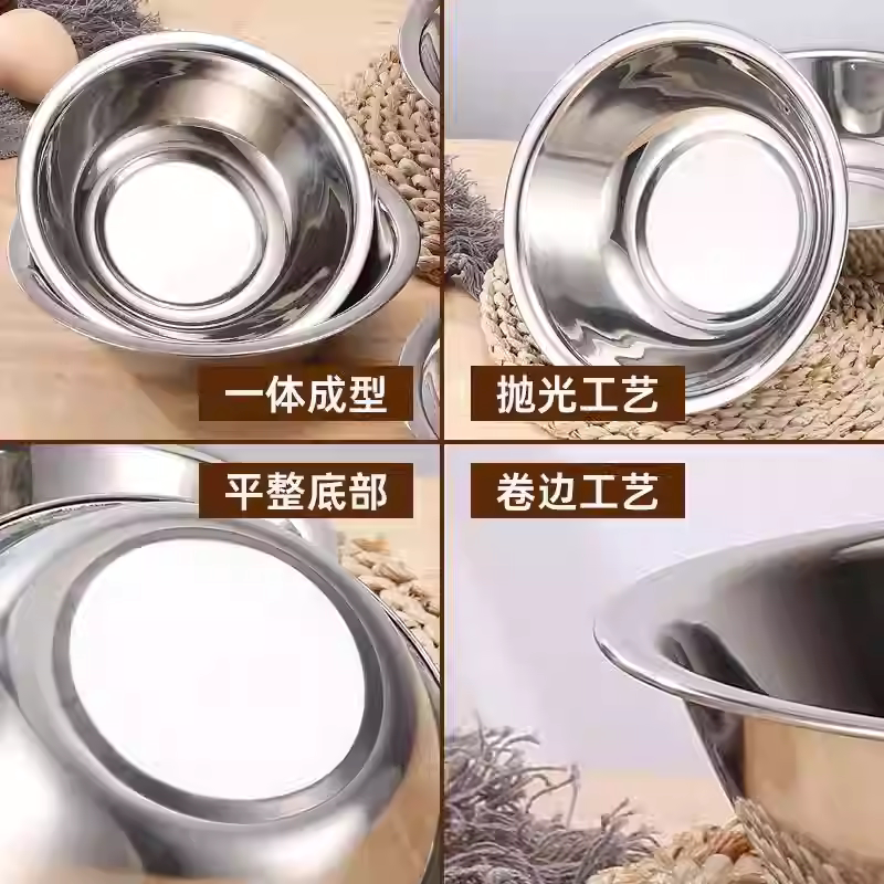 食品级不锈钢盆洗菜和面加厚打蛋家用厨房凉拌沙拉料理盆直边盆碗