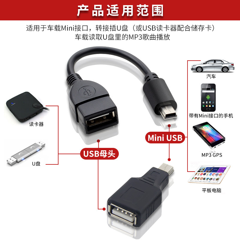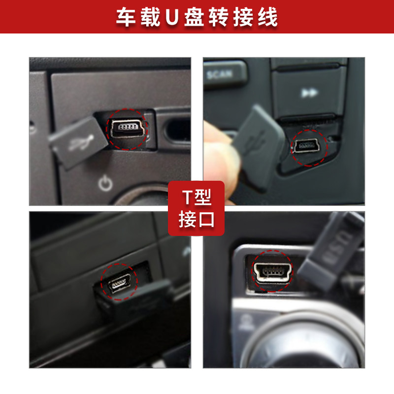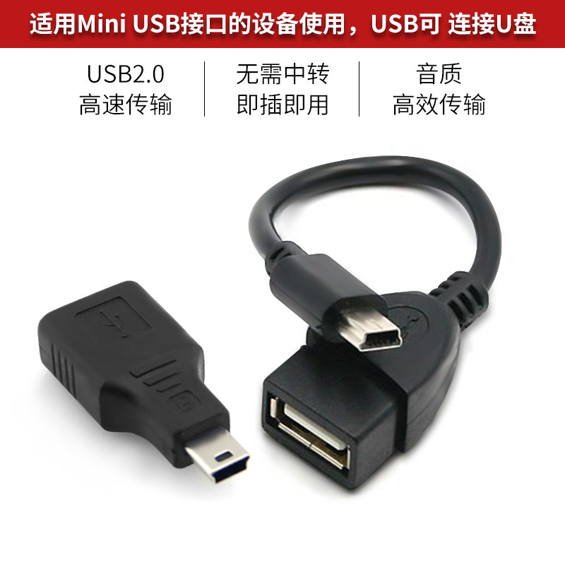 两个装汽车音响U盘转接头车载MP3转换器miniUSB连接线T型接口转接