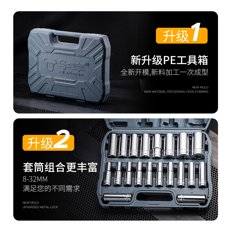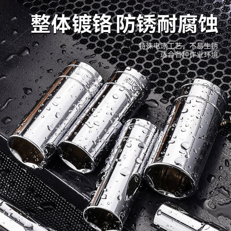 亮面电动扳手套筒组合套装电扳手加厚六角套筒头棘轮扳手工具