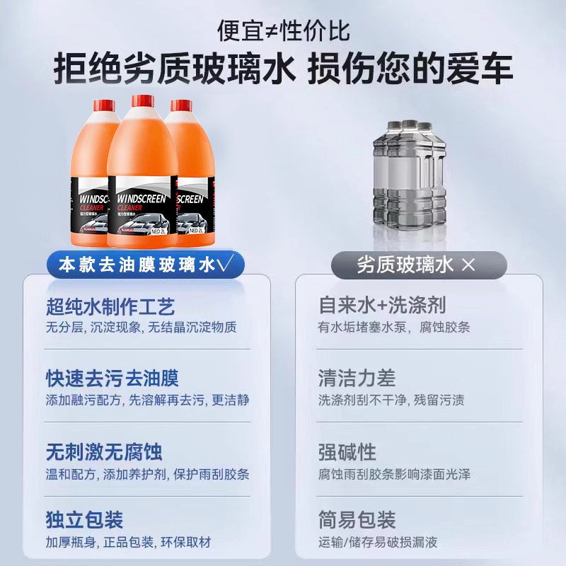 强力去污乙醇玻璃水去油膜汽车专用配方夏季防雨冬季防冻雨刮水