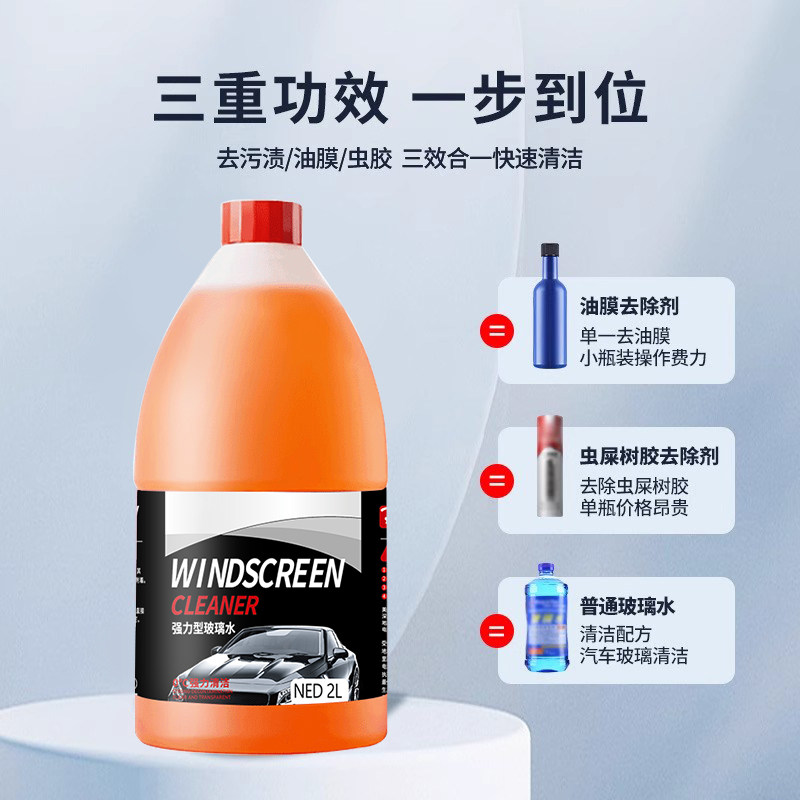 德国原液汽车玻璃水2L装防雨镀膜去油膜虫胶强力清洁除垢冬季防冻