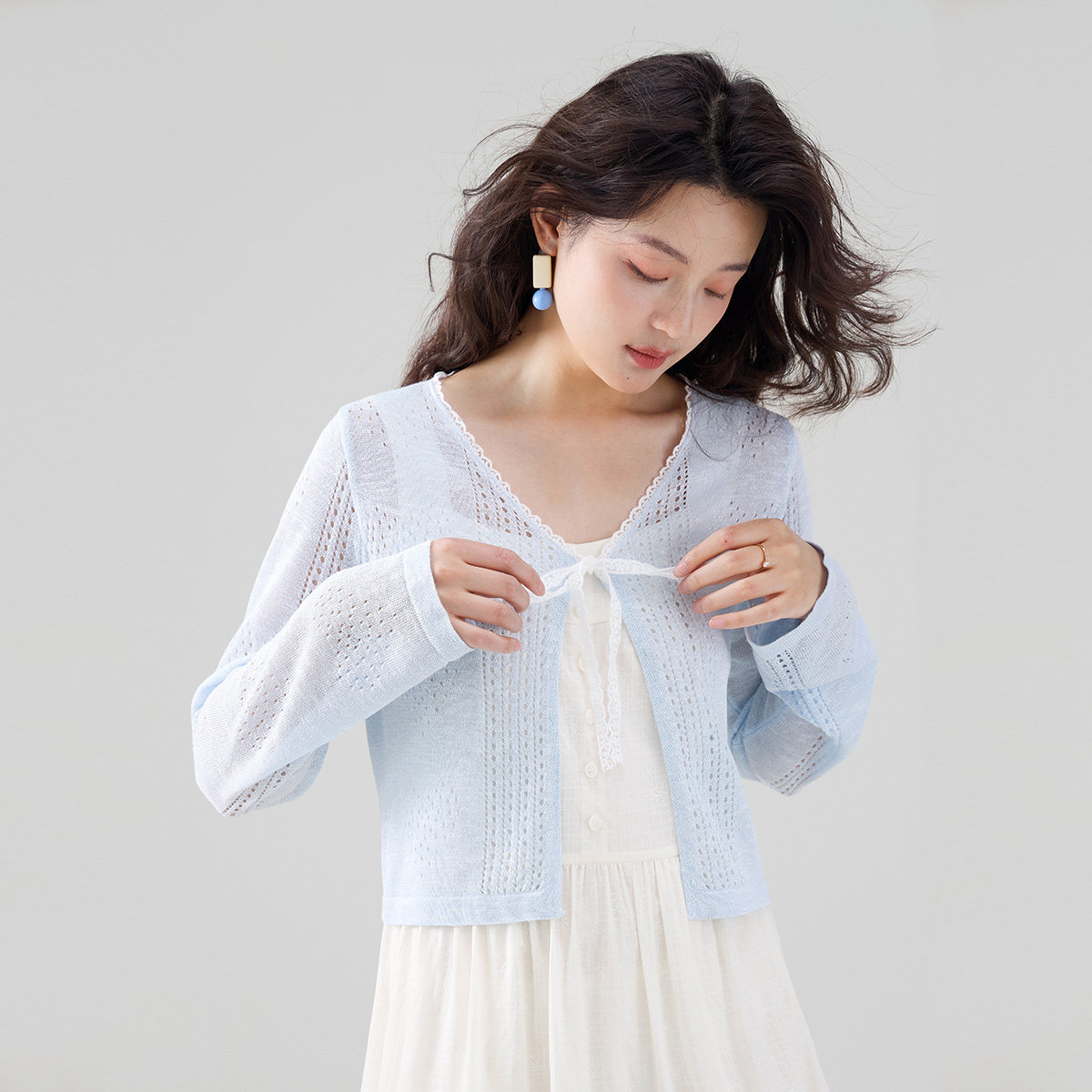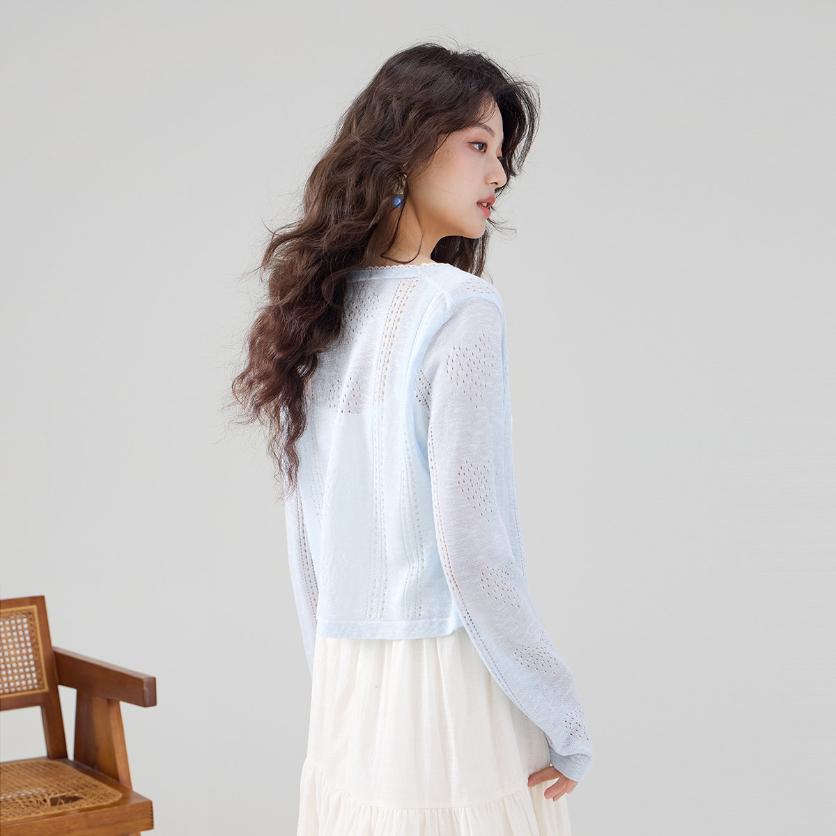 春秋镂空针织衫开衫上衣女薄款空调衫高级感小披肩外搭长袖罩衫