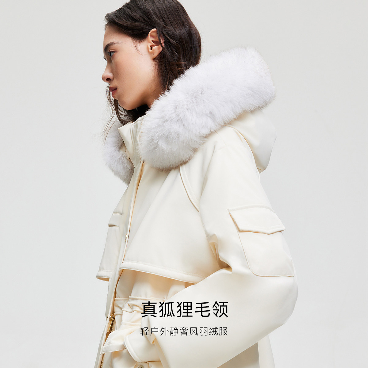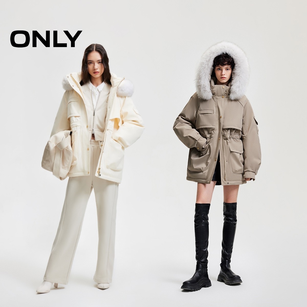 【90白鹅绒】ONLY奥莱冬季新款工装风毛领派克羽绒服女
