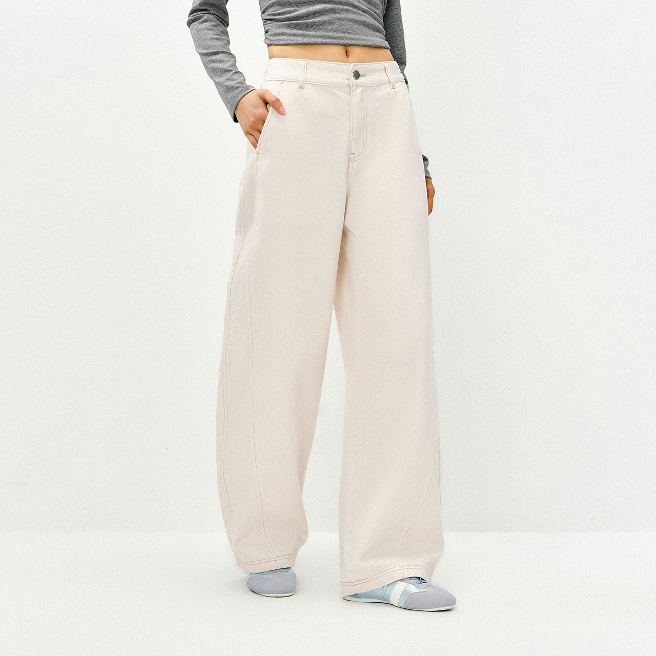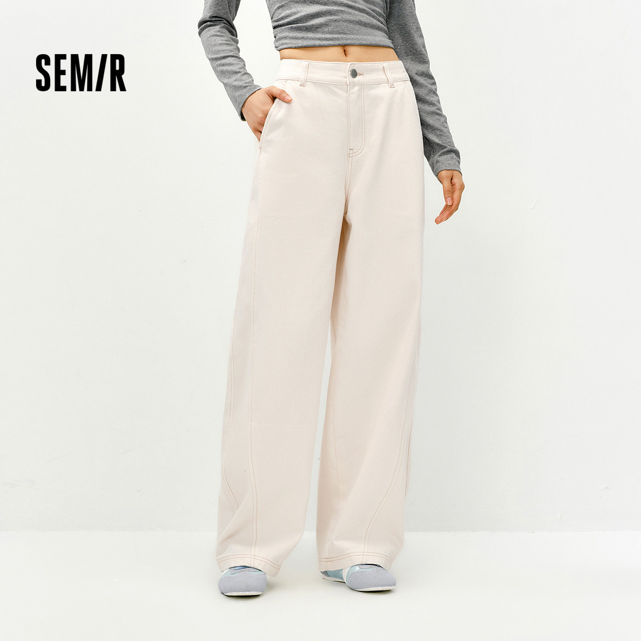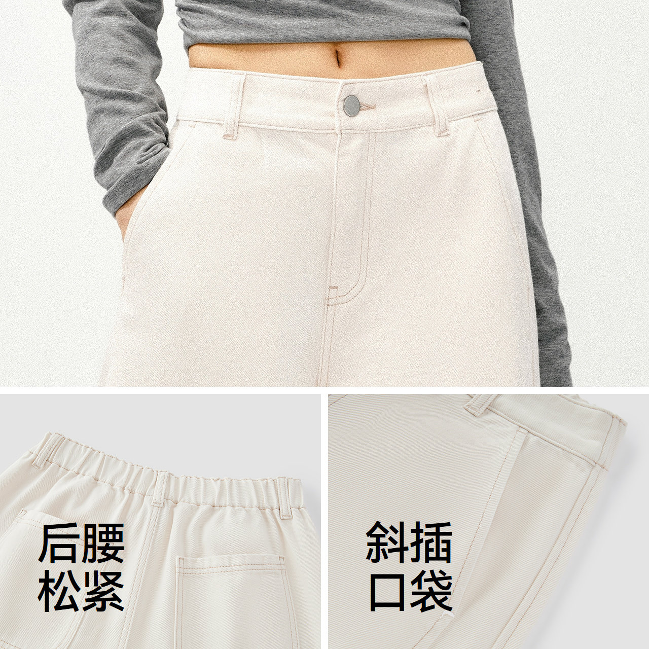 森柔牛仔|森马阔腿牛仔裤女2025秋冬白色牛仔裤简约女士高腰裤子