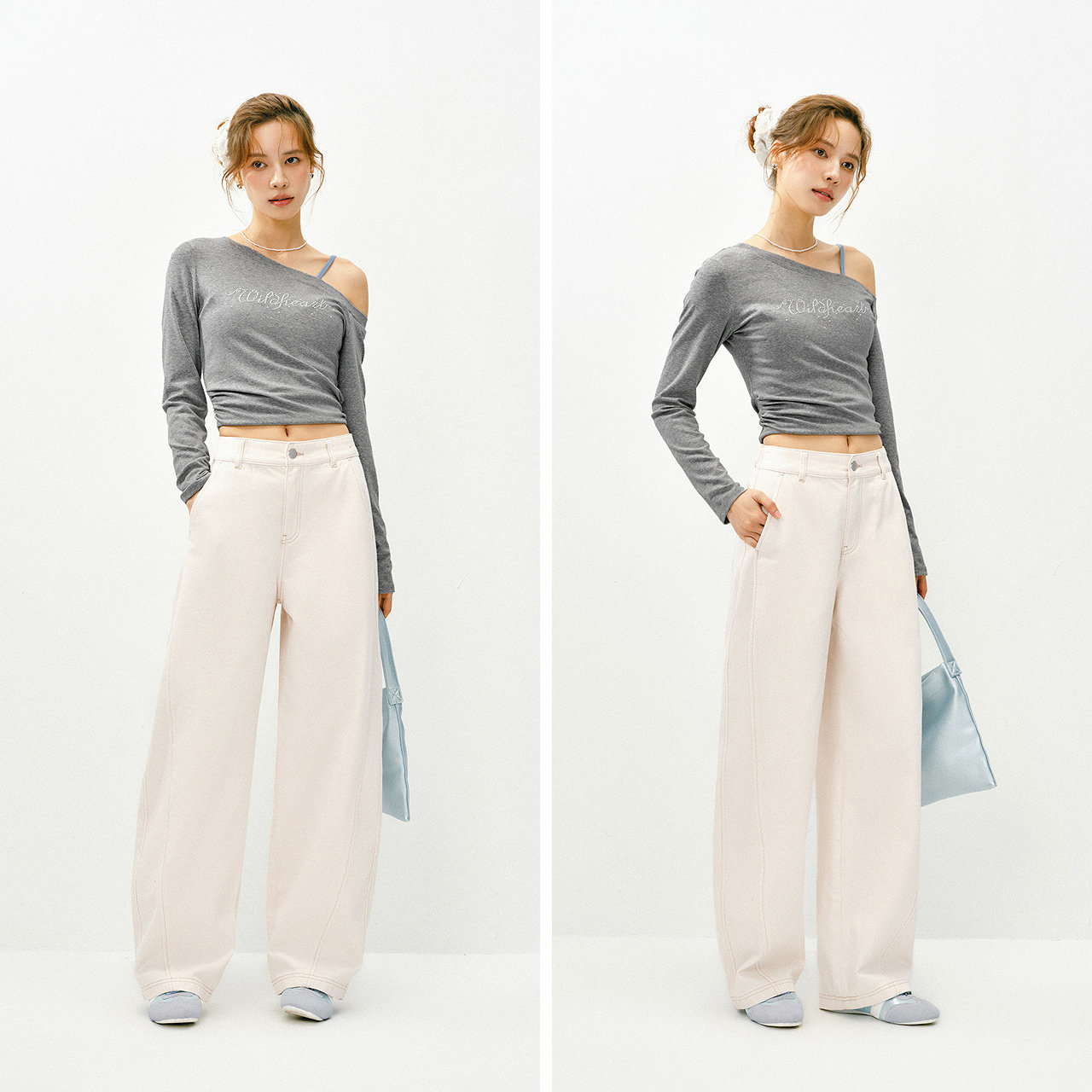森马牛仔裤女春分割白色宽松弯刀裤2026新款松弛感显瘦潮酷拖地裤